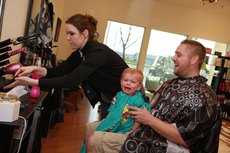 The plan is to let his hair grow out and be a little shaggy, but we decided he still could use a trim. Starting to look a little too 'business in the front, party in the back!'